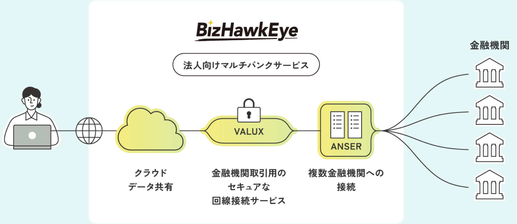 BizHawkEyeは、複数金融機関の口座を一元管理できる法人向けマルチバンクサービス。