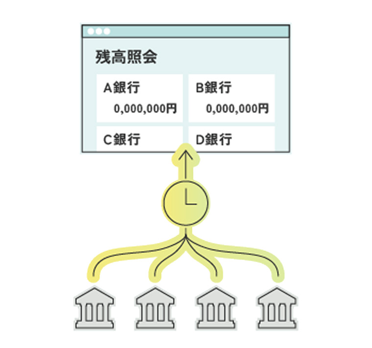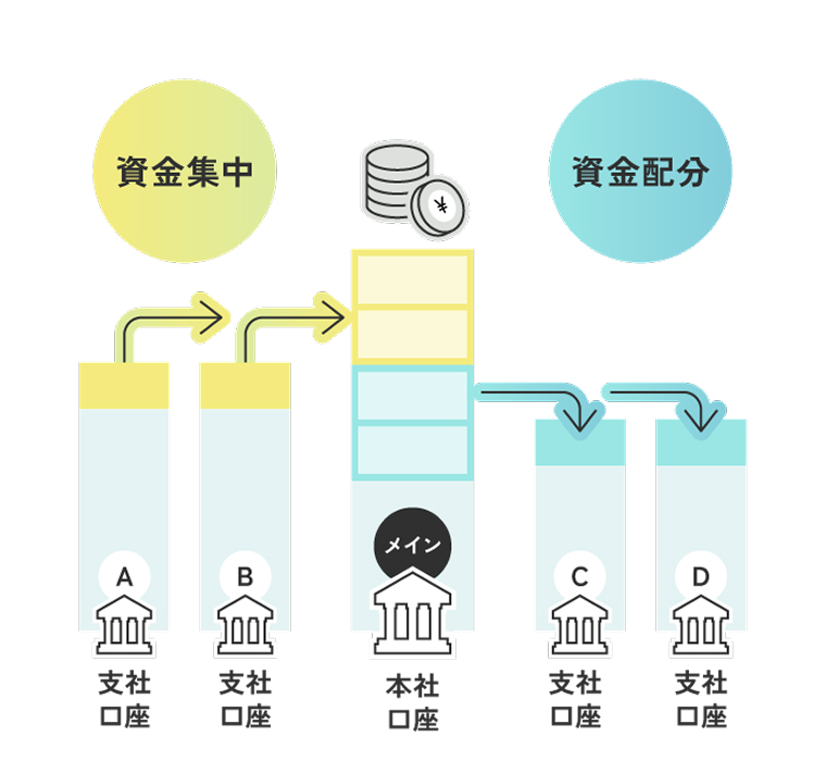 親口座への資金集中や子口座への資金配分など、複数金融機関をまたいで資金管理を一元化することで、資金の効率的な運用を実現します。